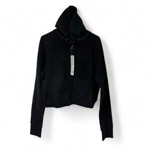 The CRZ YOGA Women's Fleece Lined Zip Up Cropped Hoodie in Black, size XL, offers cozy comfort with a stylish cropped design. Made from Cotton, Modal, and Elastane, it features long sleeves with thumbholes for added warmth.