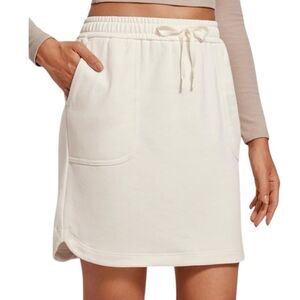 CRZ YOGA Cotton Sweat 17'' Jersey Skirt with Pockets, White Apricot, XS, NWT