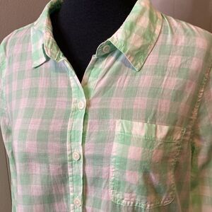 Red Camel Women’s Medium Casual Button Down Shirt Plaid Sheer Chest Pocket