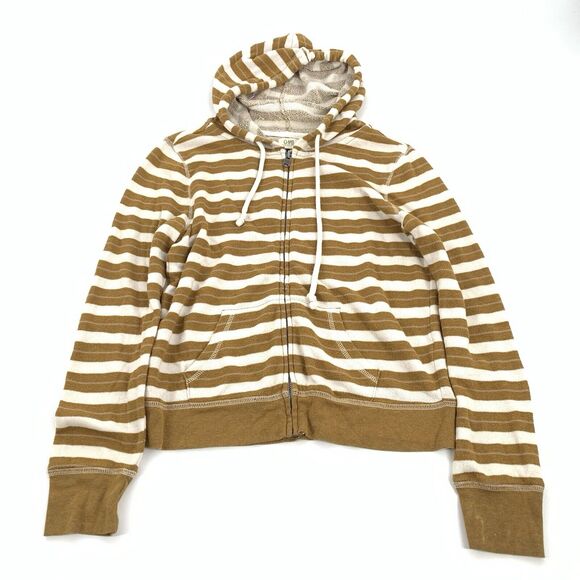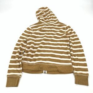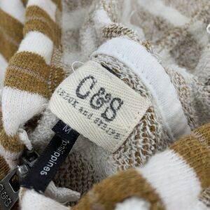 C&S Check and Stripe Terry Cloth Full Zip Hooded Jacket M Cream White Striped