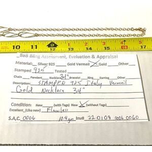 CS# Striking 35” 925 Gold Vermeil Necklace