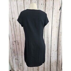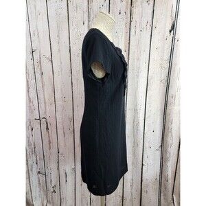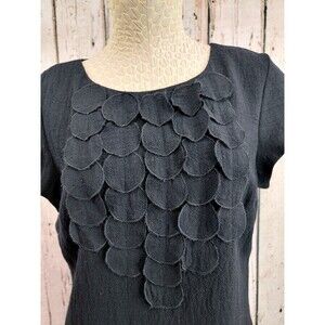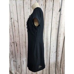 CS Women's Size 8 Boden Wool Bib Detail Cap Sleeve Sheath Little Black Dress EUC