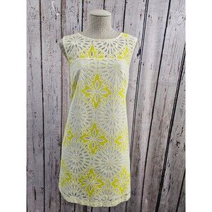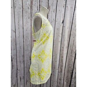 CS Women's XL Weston Anthrop Yellow Floral Lace Overlay Shift Summer Dress EUC