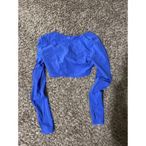 CSB Crop Shop Boutique Long Sleeve Blue Crop Top Twist Front L