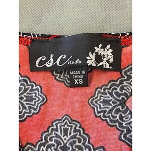CSC Studio Blouse Womens Size XS Red White Black Paisley Handkerchief Pattern