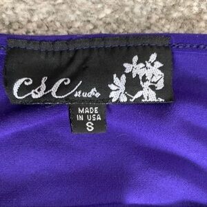 Simple top by CSC Studio is In excellent condition! No stains, holes or pilling. Easy, loose shape and a gorgeous deep purple color. The fabric is such a lovely slinky stretch knit. About 19” pit to pit, 23” length.