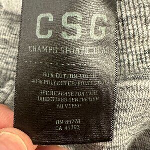 These CSG cargo jogger pants in gray heather feature a drawstring adjustable waist for a secure fit and multiple pockets for utility. Elastic cuffs add to the modern, comfortable design, making them versatile and functional for casual wear.