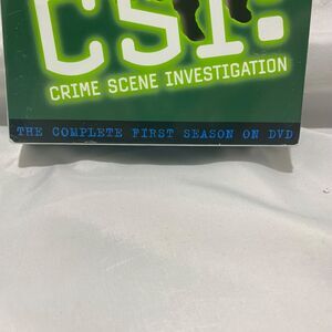 CSI Crime Scene Investigation The Complete First Season DVD 6 Disk Set. Very clean and well-kept condition. No major damage or stains that we saw at all. May have Some light wear from use and storage but still in good condition. The DVDs appear to be in very good condition. The only thing we did notice is that the previous owner appears to have wrote their name on the DVDs. But they still play very good.