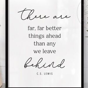 C.S. Lewis 8x10 print. "There are far, far better things ahead than any we leave behind." This listing is for the print alone, not the frame. Also available in 5x7" and in 5.5" magnet. Bundle to get a discount.