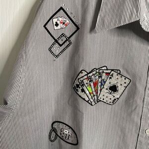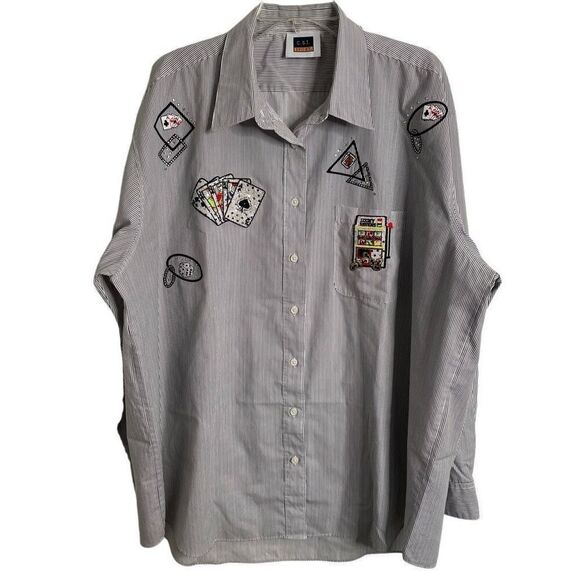 CST Sport Womens Oversized Button Up 1X Spades Bunco Casino Embroider Bejeweled