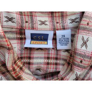 CST Sport Womens Shirt 2X Plus Long Sleeve Red Brown Plaid Cotton PLA88E