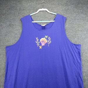 CST Sport Womens Sleeveless Shirt Top Size 4X Purple Embroidered Shells Beach