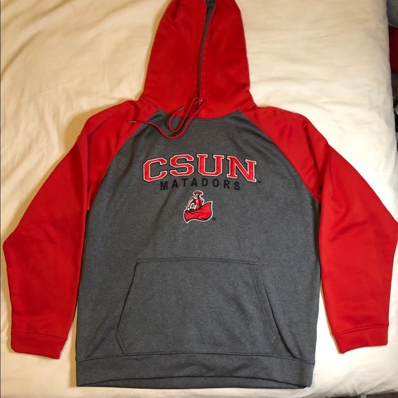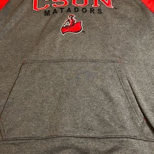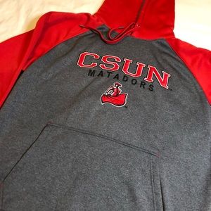 CSUN Hoodie in great condition, has been used a few times but no wear and tear besides the fading of the logo inside the hoodie as shown in picture. Very warm and great for those cold mornings. Gray and red colors, and front pocket. Comes from a smoke and pet free home. Please let me know if you have any questions. Thank you and Happy Poshing!