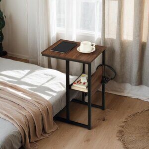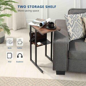 C-Shaped End Table, Side Table with Storage Shelf, Coffee Table for Sofa, Living Room, Bedroom, Home Office, Small Spaces, Walnut Brown