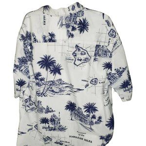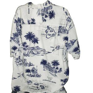 CT Hawaii Fashions Shirt Mens XL Cotton Poly Short Sleeve Chart Of Hawaiian Isl