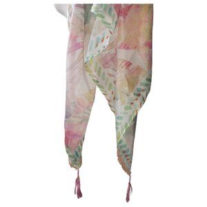 CT1585 Vismaya Floral Pastel 100% Silk Scarf/Wrap with Tassels and Fringe