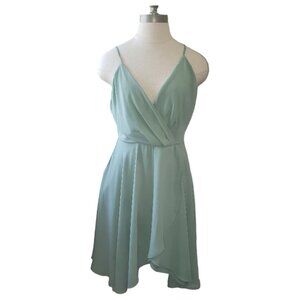 CT1604 Windsor Mint Green Spaghetti Strap Faux Wrap Dress L
