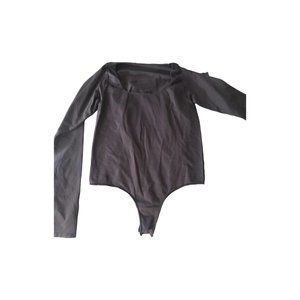 CT2105 Skims NWOT Essential Scoop Neck Bodysuit Long Sleeve Thong Dark Gray