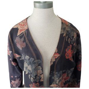 CT445 Philosophy Gray Lightweight Floral Open Cardigan L