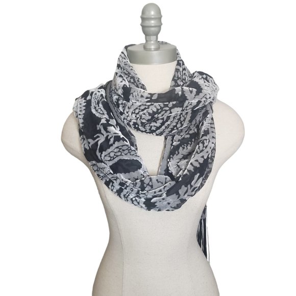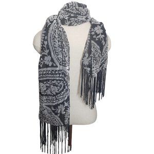 CT829 Style & Co White & Black Fringed Wrap