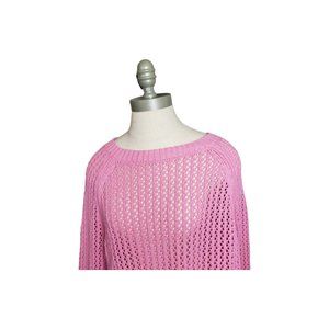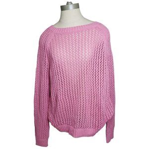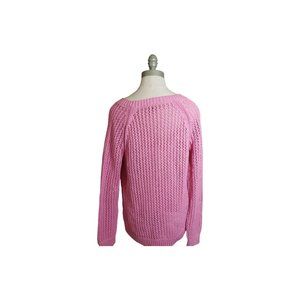 CT858 Talbots Ladies Crew Neck Long Sleeve Pink Cable Knit Sweater L
