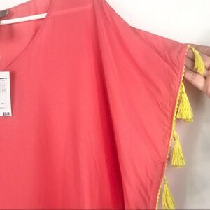 NEW C&T Beach Coral Lily Beach Cover Up with Tassel Trim