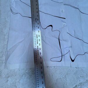 CTC Linens Womens XL Button Down Tunic Oversized Shirt Top White Black Print