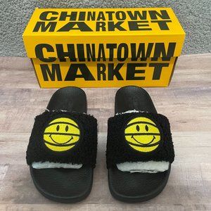CTM Slides Sandals Big Kids Black Fuzzy Sz 4 Smiley SHIPS ASAP NEW IN BOX Summer