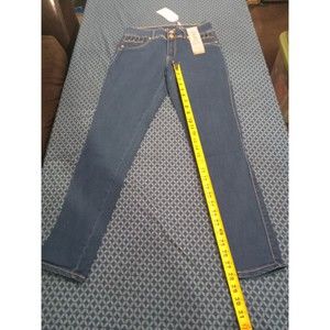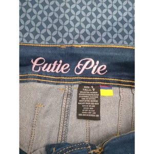 Elevate your style with these trendy skinny jeans from CUTIE PIE. The dark-washed denim fabric is a blend of polyester and cotton, making it comfortable and stretchy to wear. These jeans feature a zip and button closure, and the waist size is 32 inches, fitting a size 9 perfectly.