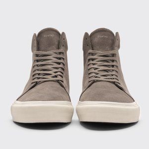 Legacy inspired sneaker, designed for the true minimalist. High top on a custom vulcanized outsole. 36mm foxing tape. Clean eyestay without stitching and eyelets. Debossed logo at tongue. Unpadded tongue. 8mm padded collar. Leather lined upper. FOURMULA® insole measuring 10mm thick at forefoot and 18mm at heel, with a leather inlay that provides an unmatched level of comfort.