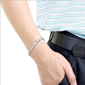 CUBAN FIGARO STERLING SILVER CHAIN LINK UNISEX 8MM BRACELET SET