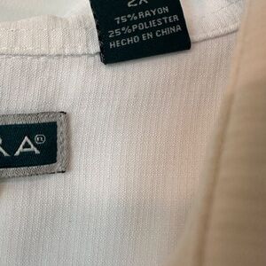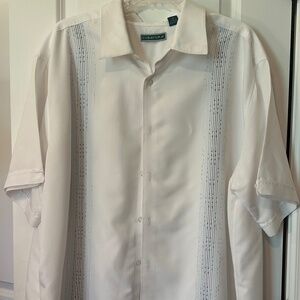 EUC CUBAVERA brand casual shirt in crisp white, fresh from the dry cleaners. Decorative top stitching in varietal blue threads from shoulder to hem on both sides. No evidence of wear. Size- 2X