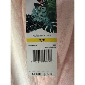 CUBAVERA Pastel Pink Floral Hawaiian Shirt Lightweight Linen Blend Size M