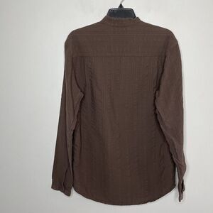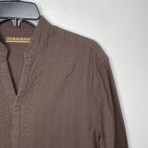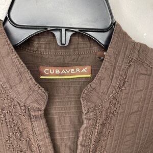 CUBAVERA Womens Brown Popover Top Small S Cotton Embroidered Detail Long-Sleeve