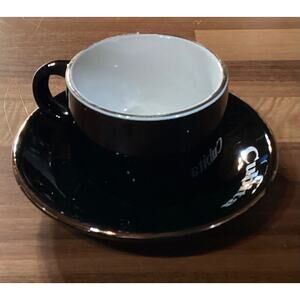 The CUBITA Black & Gold Espresso Cup & Saucer Set is a contemporary two-piece set perfect for any occasion. Made of porcelain and ceramic, the cup features a sleek black design with a gold rim, adding a touch of elegance to your espresso sipping experience. With a capacity of three ounces, this set includes a saucer for your convenience. The set is designed by the brand Cubita and is ideal for serving one person. Its round shape and logo pattern make it a stylish addition to your kitchen or dining area.