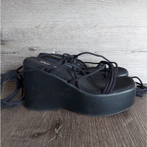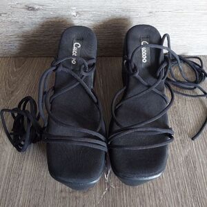 CUCCOO Trending Thin Strap Strappy Wedge Tie Platform Sandals 7