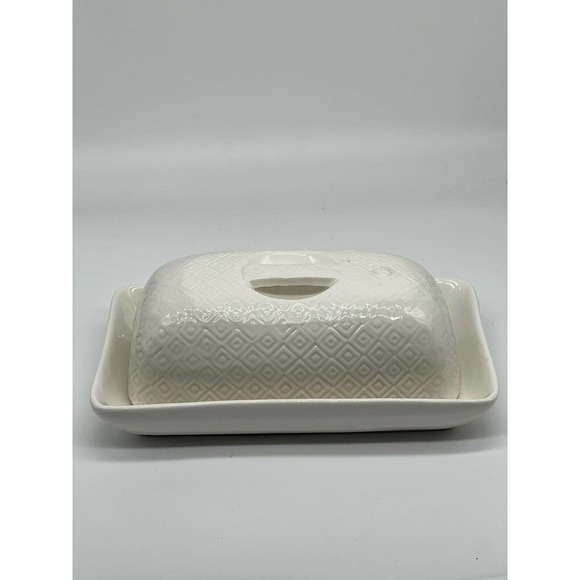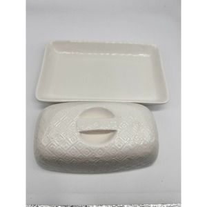 CUCINA White Porcelain Embossed Butter Dish Bread + Butter Australia NWOT