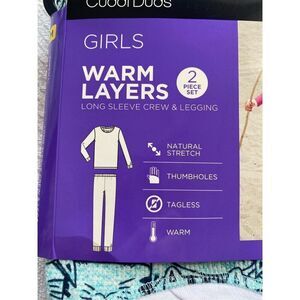 CUDDL DUDS Girls Medium (7/8) Thermal 2-Piece Base Layer Set - SEAFOAM CAT