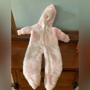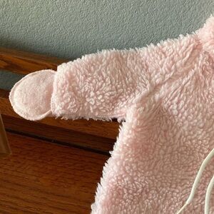 Cuddle time, pink and white 3 to 12 months zip up sleeper. Gently preowned condition.