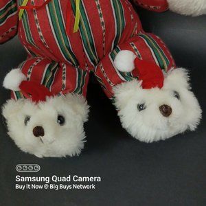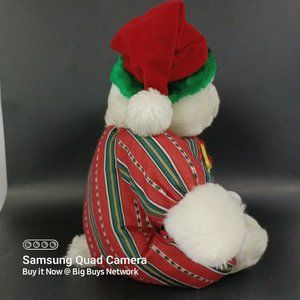 CUDDLE WIT 15" White Christmas Teddy Bear Plush in Mini-Bear Slippers & CHRISTMAS Hat/Cap.