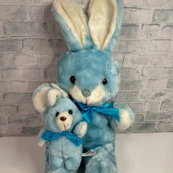 CUDDLE WIT BLUE EASTER BUNNY WITH BABY ATTACHED IN LAP STUFFED ANIMAL