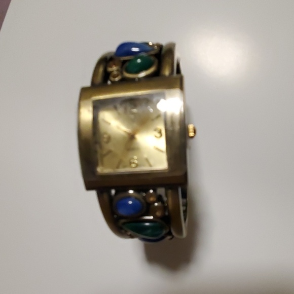 Cabochon cuff watch in gold with 3 colored stones ....brand new never been worn