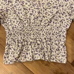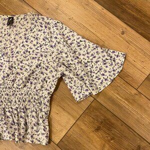 CUIDAD CON EL PERRO Top Women's Pullover Bell Sleeve Floral V-Neck Multicolor M