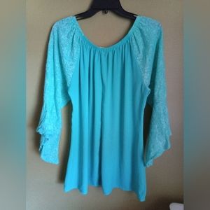 C.U.K.Y. Blue Silk Quarter Sleeve In Lace Blouse Women's Medium