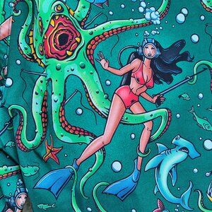 CULPRIT Get It Green Kraken Tattoo Style Print Mens Swim Trunks Board Shorts M