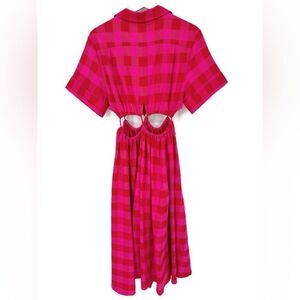 CULT GAIA Keegan Cutout Checked Twill Midi Shirt Dress In Ghermez Rose S