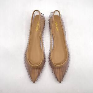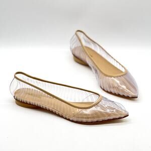 CULT GAIA Leena Leather Trimmed PVC Pointy Toe Flat Womens 40 Tan Clear Jelly