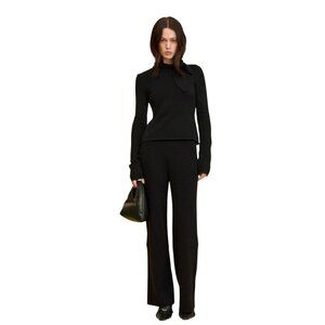 A ribbed knit pant crafted from a wool and cashmere blend yarn with an elasticated waistband and slight flare silhouette.