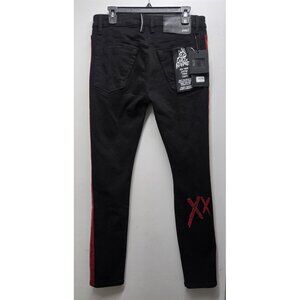 CULT of Individuality Designer Jeans Black Denim Red Snakeskin Distressed NWT