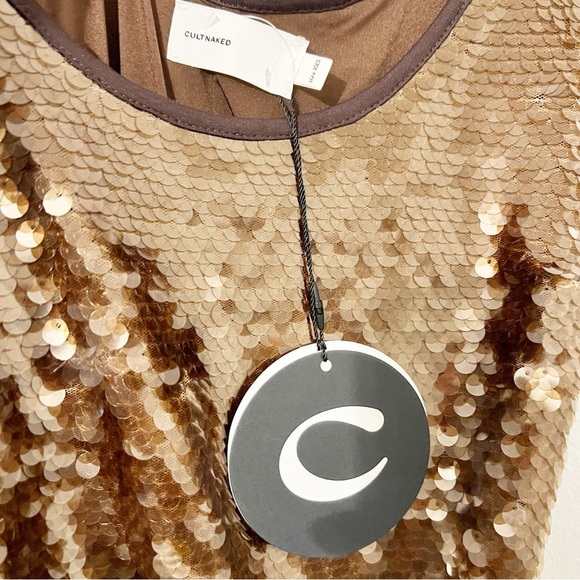 CULTNAKED Tan Dress in Brown Midi Sequin Cocktail Revolve Size XXS NWT